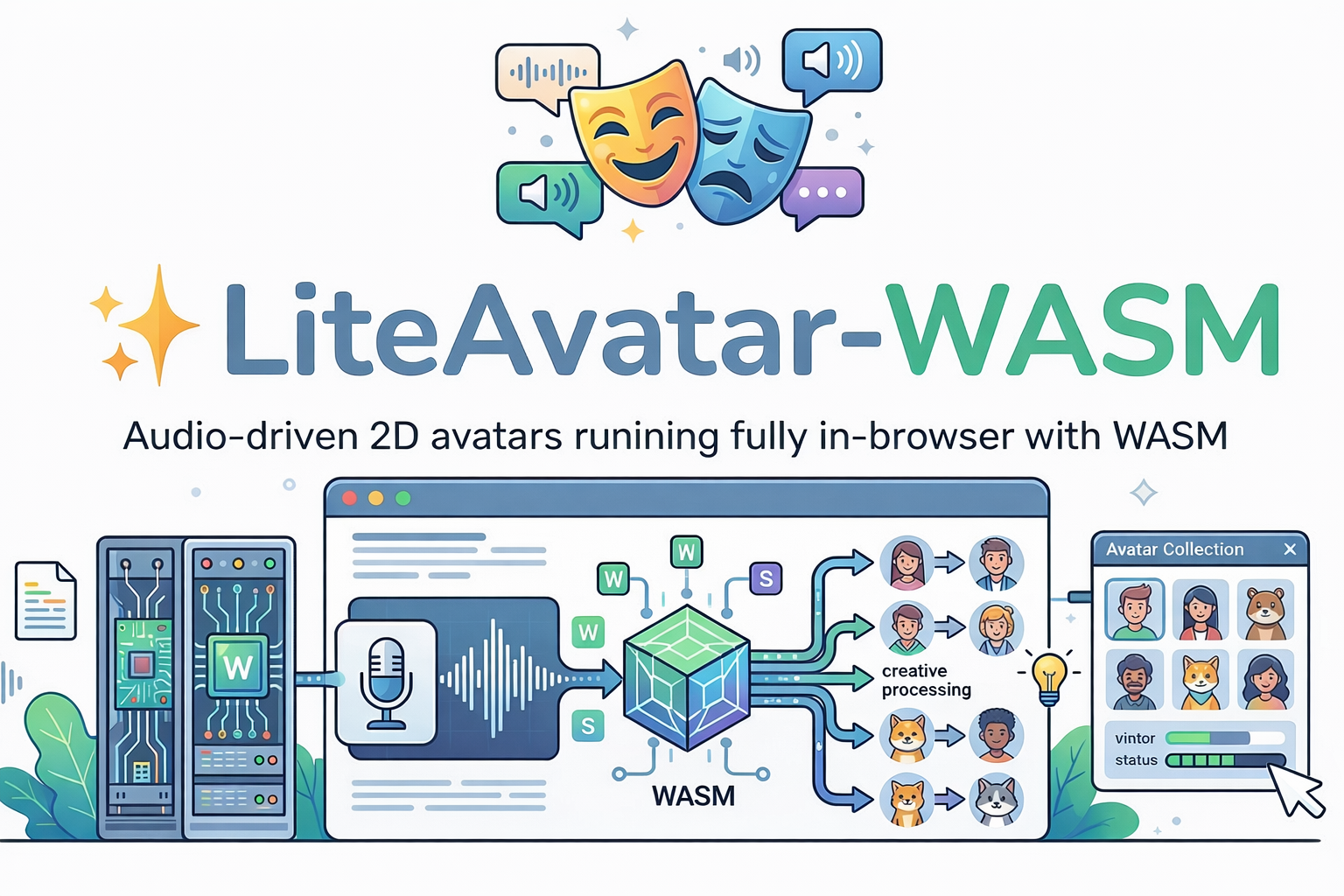 A lightweight audio-driven 2D avatar solution that runs entirely in the browser using WASM based on Lite-avatar. No backend server required.
